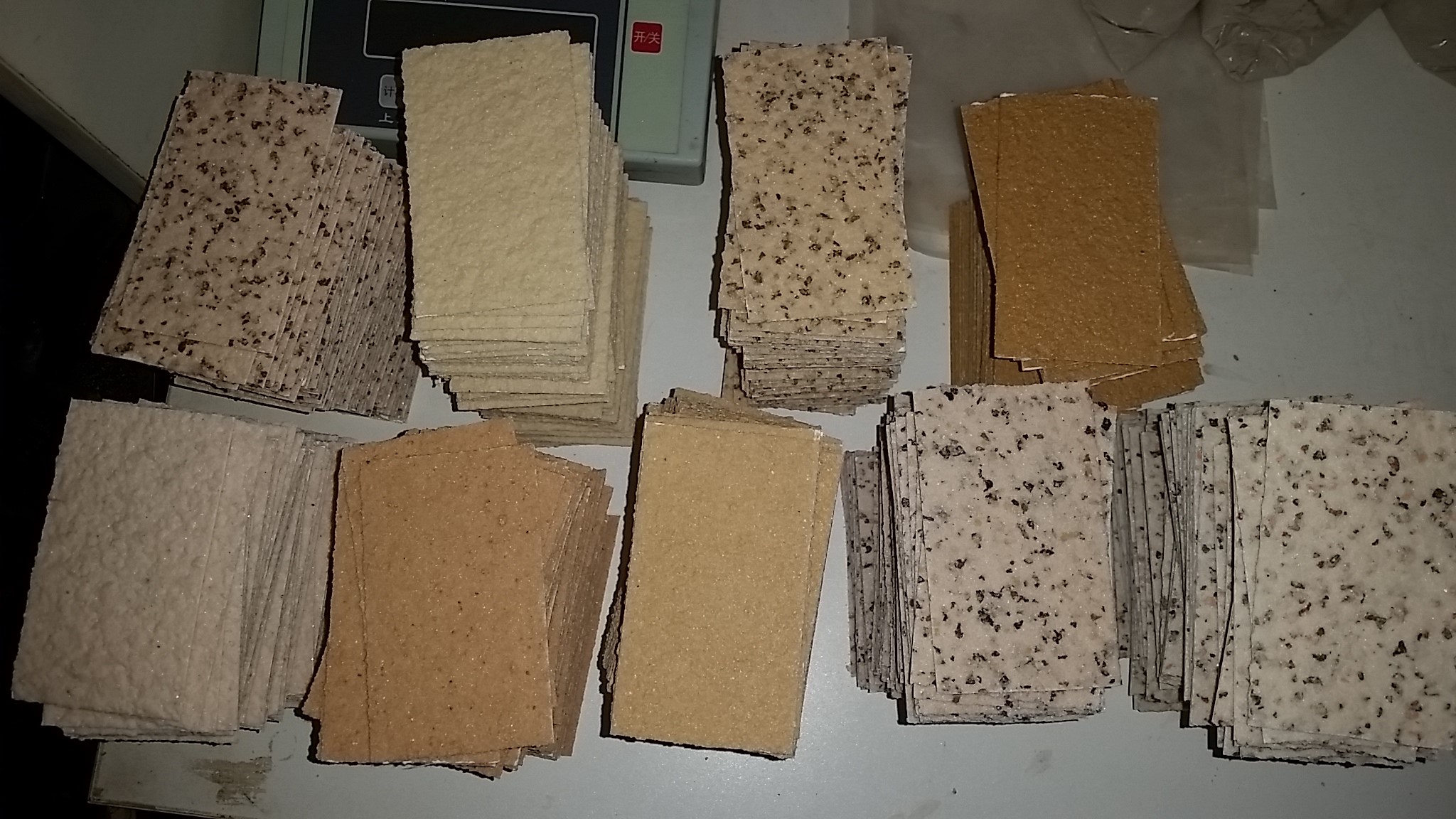 采用专用的切刀进行切片处理,切的时候检查好每张小片的情况,对于有缺陷的小片,必须丢弃处理。切好的小片必须要编号,然后再整齐的堆放起来,这样制作样板册的时候,才可以清楚的知道我该用那片。